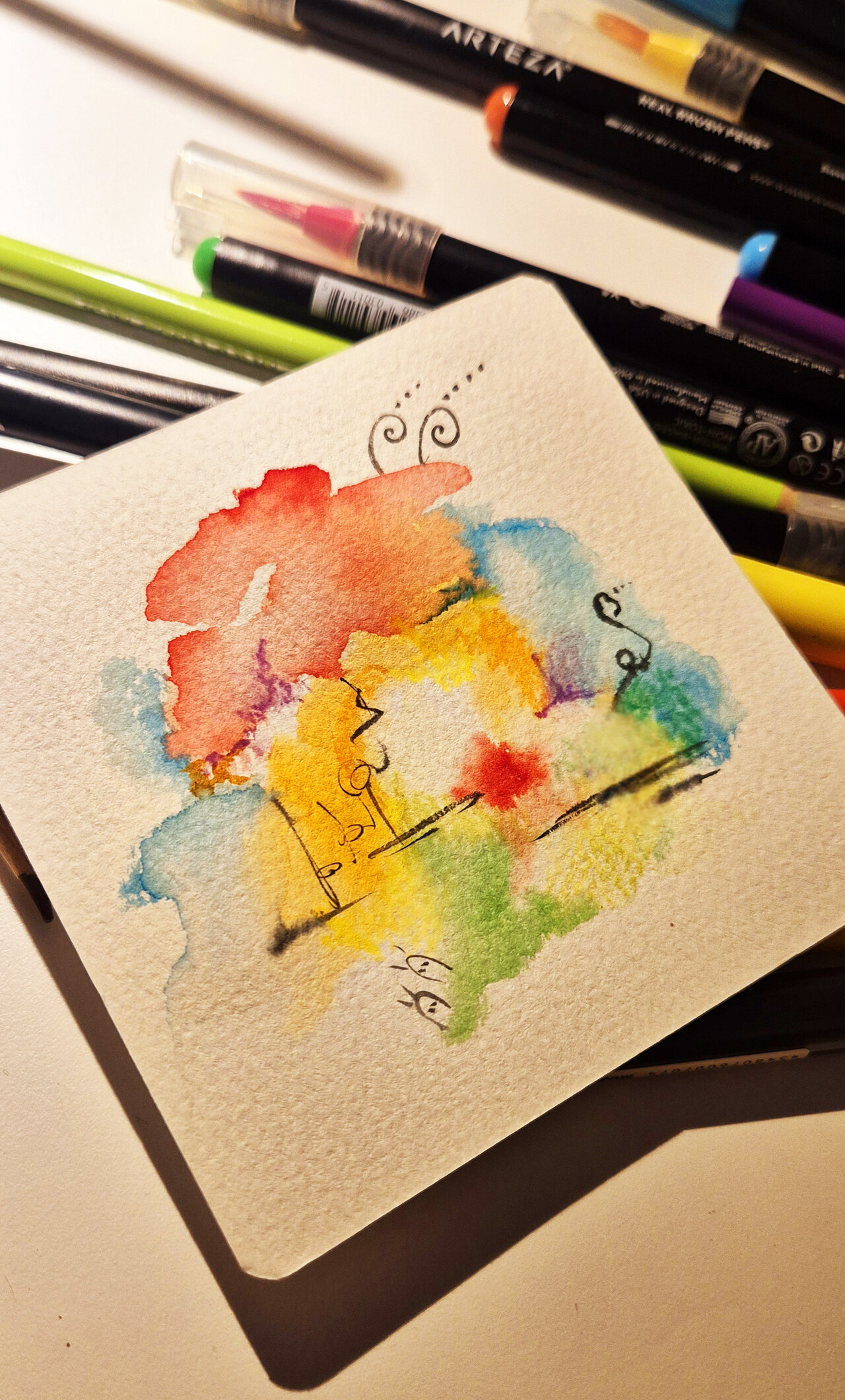 Molto semplice, perché questi strumenti mi danno la possibilità di utilizzarli ovunque....in vacanza, sul treno, stesi su un bel prato.....si possono utilizzare sia asciutte che bagnate. Per ottenere un risultato veramente originale e creare bellissimi effetti mixed media alla fine basta poco.